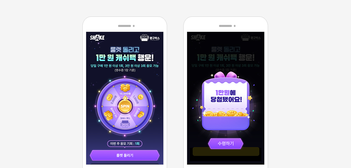 ¸ÅÀåÀ» ¹æ¹®ÇØ °áÁ¦Çϰí ÀÀ¸ð±ÇÀ» ¹Þ´Â ÀÏ»óÀÇ ÇൿÀÌ ¹Ù·Î °ÔÀÓ Âü¿©·Î À̾îÁö´Â Çö½Ç?µðÁöÅÐ ¿¬µ¿ °æÇèÀ» Á¦°øÇÕ´Ï´Ù. °í°´Àº ½º¸¶Æ®ÆùÀ» Èçµå´Â ¼ø°£ Áï½Ã ·ê·¿ÀÌ ÀÛµ¿Çϰí, ±× °á°ú¿¡ µû¶ó Áï°¢ÀûÀÎ º¸»ó°ú Âü¿©ÀÇ Áñ°Å¿òÀ» ´À³¥ ¼ö ÀÖ½À´Ï´Ù.